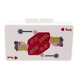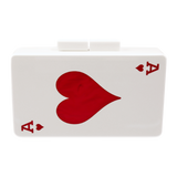 This Urania Gazelli clutch is inlaid with plexiglas pieces - marquetry technique - with the Jack of Hearts on one side and Ace of Hearts on the opposite.